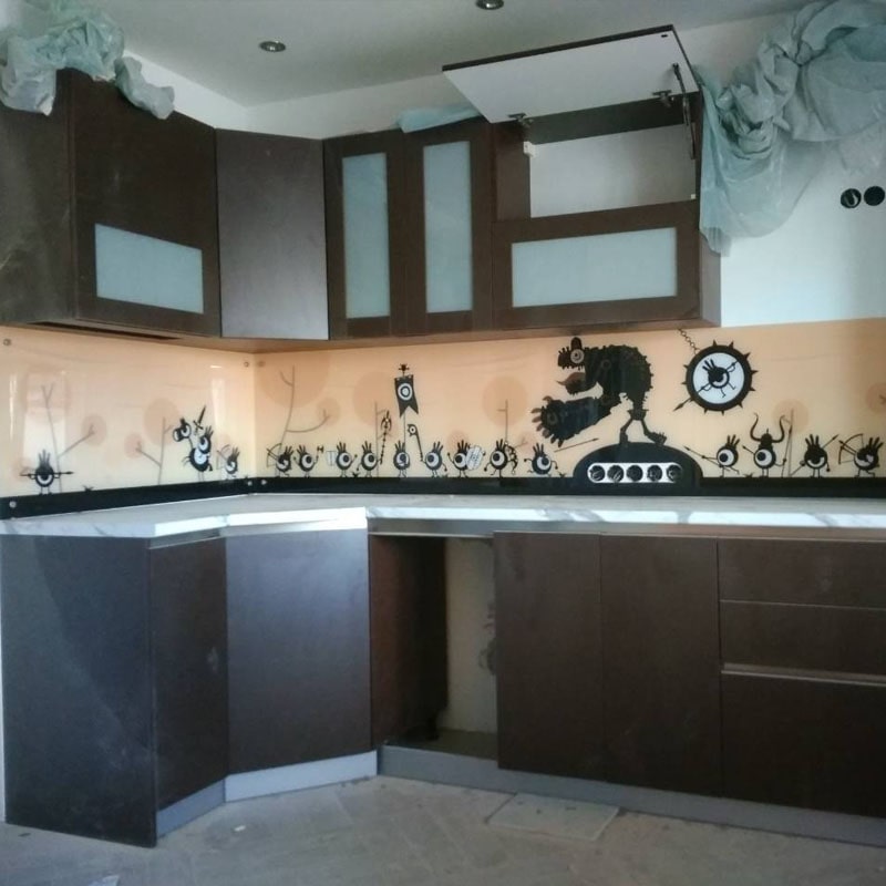 Скинали из стекла для коричневой кухни в Минске